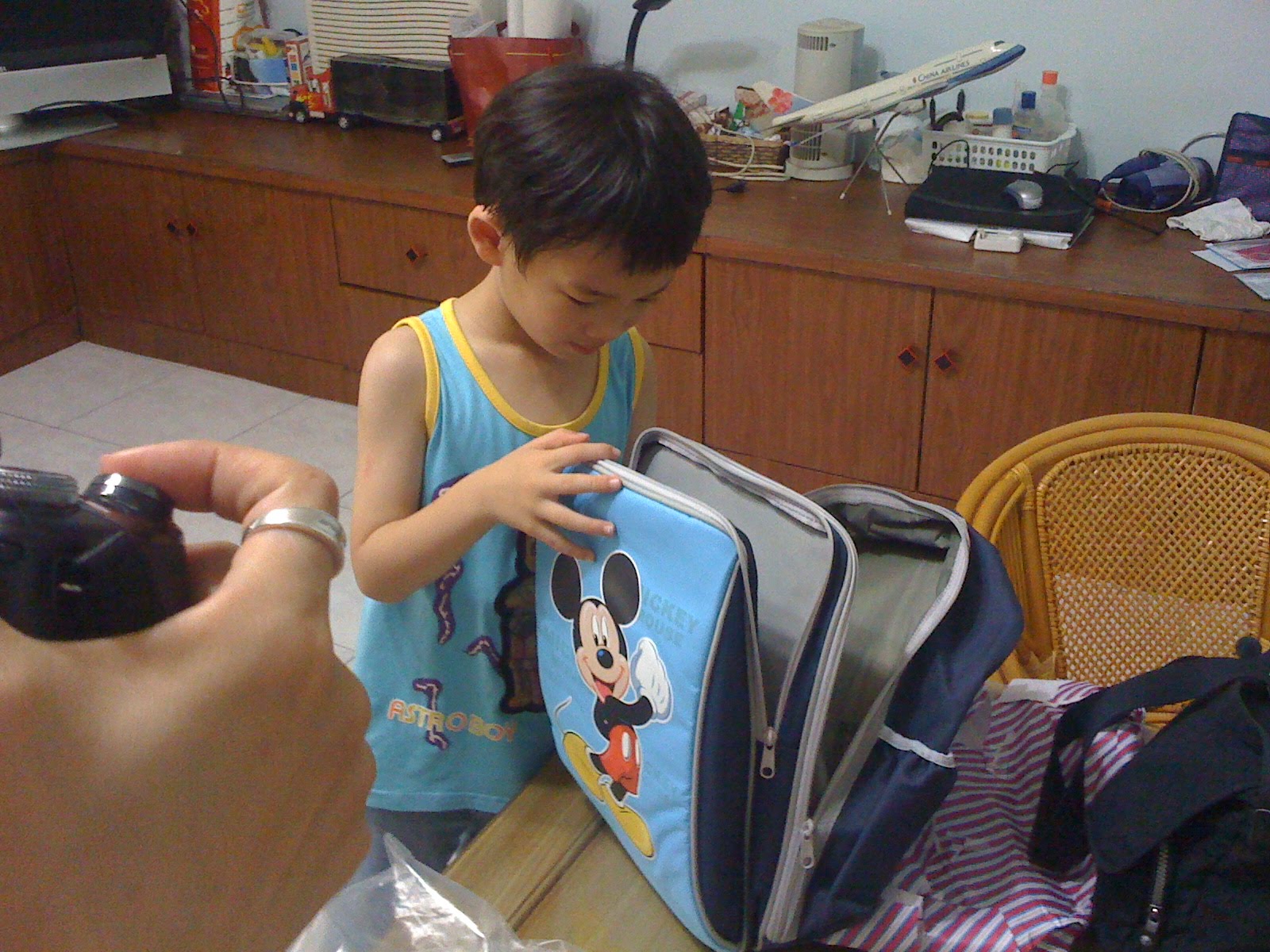 開心的咧...(我覺得配色不算太囧...比一般很蓼笑的兒童書包好很多了)